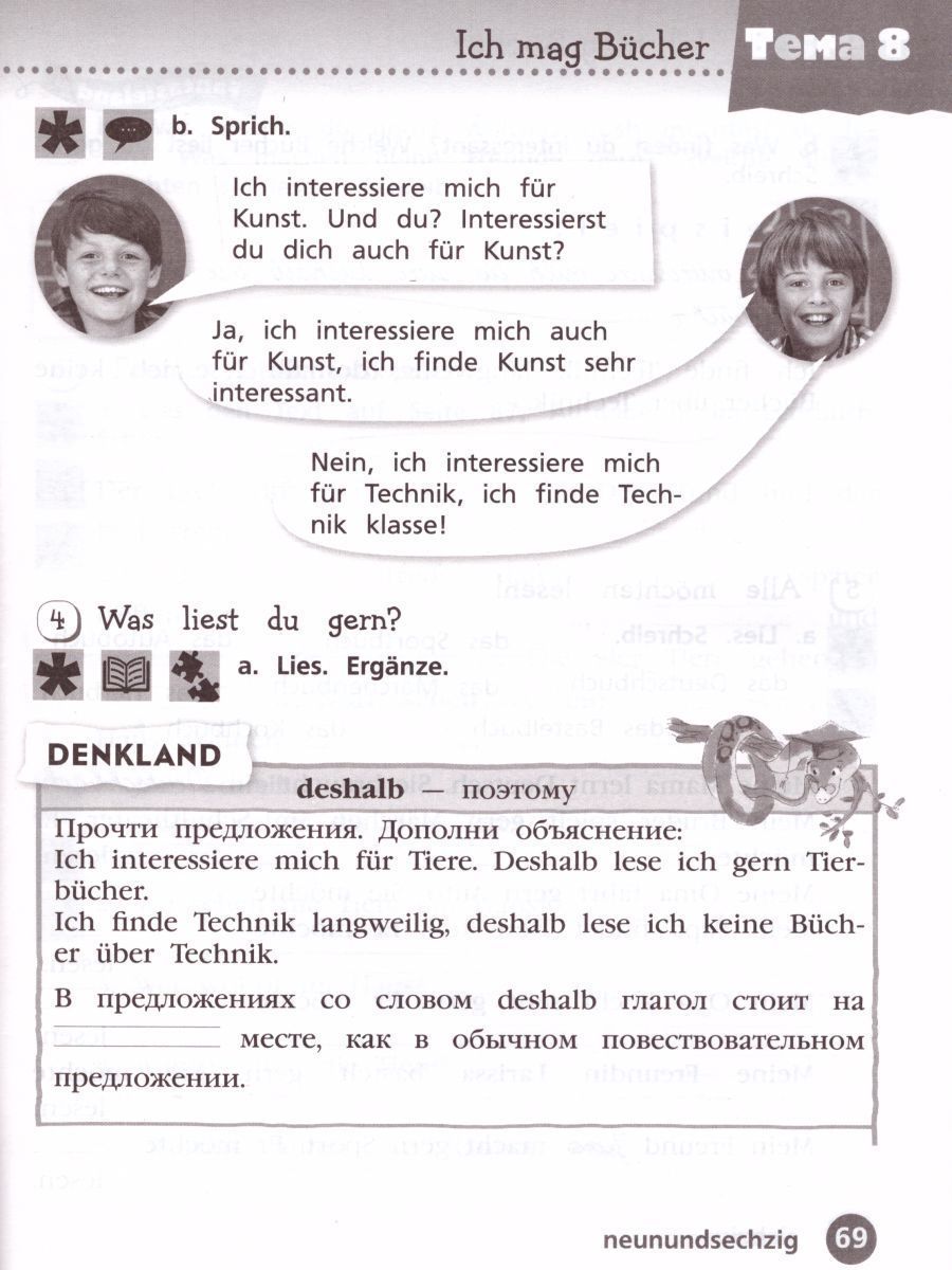 Рабочая тетрадь предназначена для учащихся общеобразовательных организаций и школ с углублённым изучением немецкого языка. Пособие состоит из двух частей, каждая из которых полностью соответствует структуре учебного пособия. Наличие упражнений под символом «звёздочка», предназначенных для школ с углублённым изучением немецкого языка, позволяет учителю учитывать особенности учащихся и уровень их обученности. Рабочая тетрадь содержит разнообразные задания для развития навыков письменной речи, а также задания для работы над грамматикой, закрепления лексических и орфографических навыков. Упражнения, ориентированные на интересы учащихся начальной школы и способствуют развитию коммуникативных навыков в игровой форме. Пособия могут использоваться учащимися дома и в классе.Характеристики