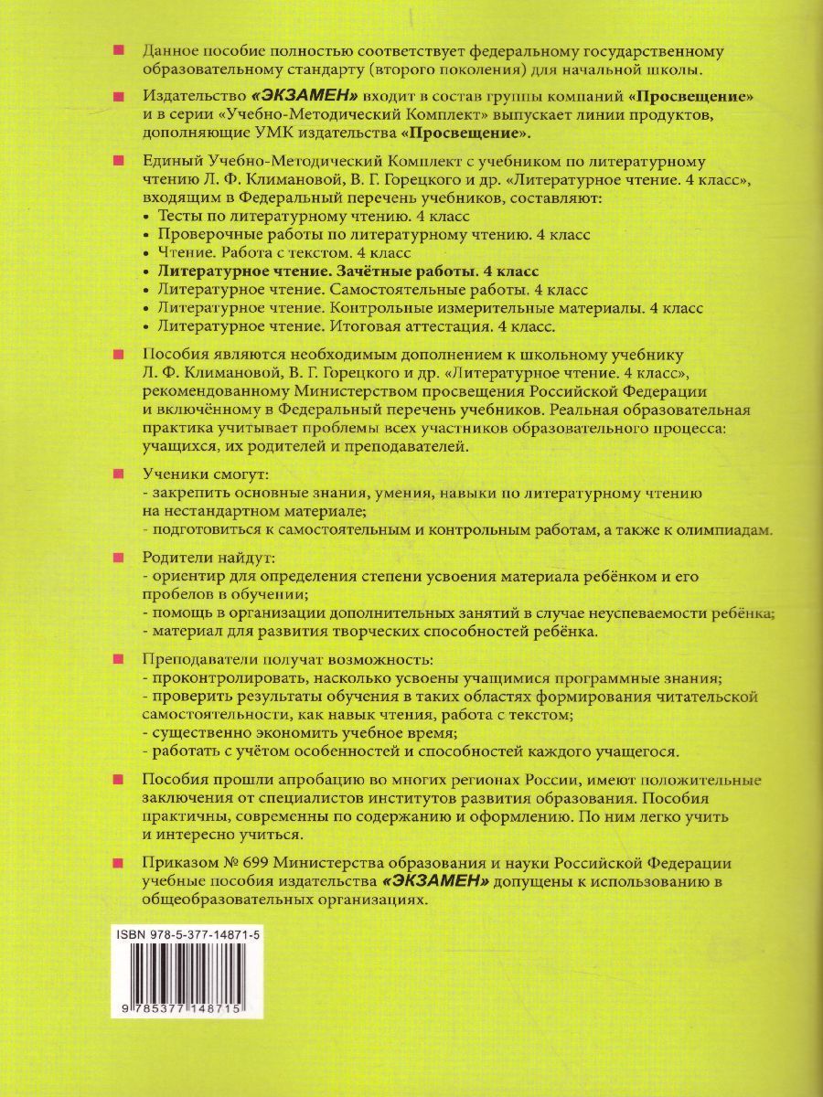 Зачетные работы по Литературному чтению 4 класс. Часть 2. ФГОС