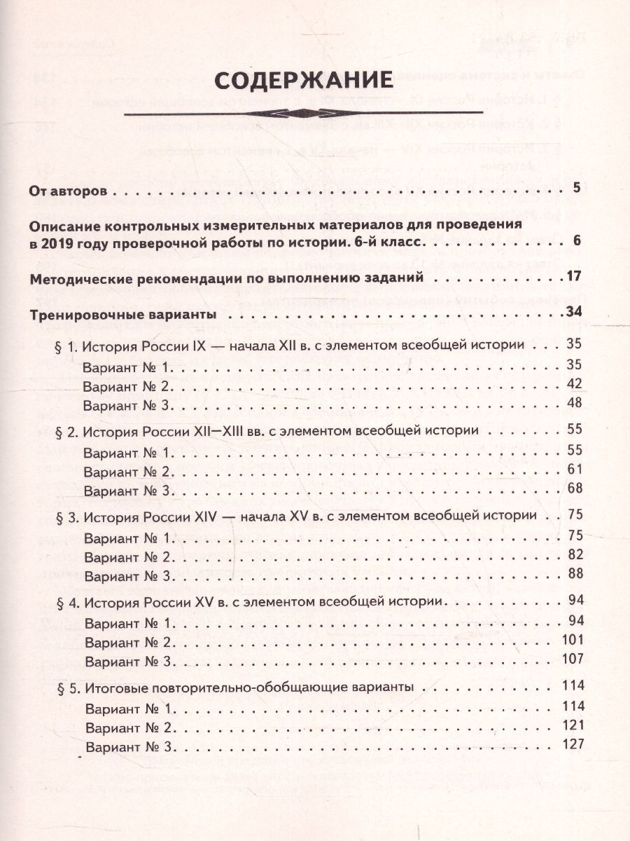 Данное пособие содержит 15 вариантов работ по истории для 6-го класса, написанных в полном соответствии с описанием и планом всероссийской проверочной работы (ВПР) и по образцу. В книгу включены: подробное описание содержания, структуры, системы оценивания, типов заданий и алгоритмов их выполнения; 15 тренировочных вариантов в соответствии с образцом ВПР; развёрнутые ответы и критерии оценивания заданий ко всем вариантам. Структура пособия позволяет работать с ним систематически на уроках и дома. Книга состоит из 4 тематических параграфов, выделенных по хронологическому принципу, и одного обобщающего. Каждый параграф содержит 3 тренировочных варианта одинаковой степени сложности. Все они включают по 3 события из истории России и одно - из всеобщей истории. Варианты полностью соответствуют структуре ВПР по истории для 6-го класса. Издание будет полезно учителям, методистам, учащимся 6-х классов и их родителям.Характеристики