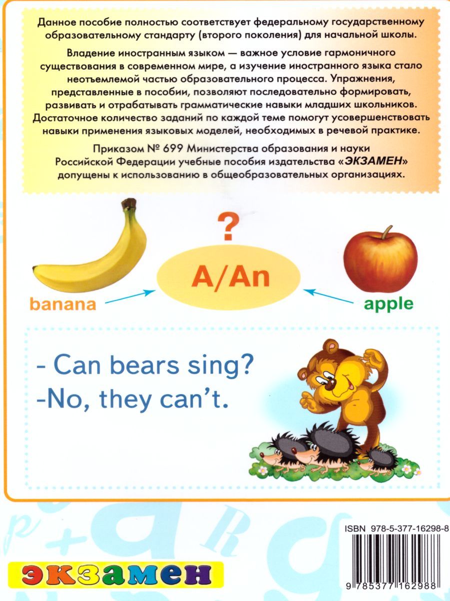 Данное пособие полностью соответствует федеральному государственному образовательному стандарту (второго поколения) для начальной школы. Тренажёр помогает последовательно сформировать, развить и отработать грамматические навыки учащихся. Достаточное количество заданий позволяет отточить до совершенства использование основных речевых моделей. Пособие предназначено для учащихся, учителей начальной школы и родителей, которые хотят помочь своим детям преодолеть трудности в освоении программы.Характеристики
