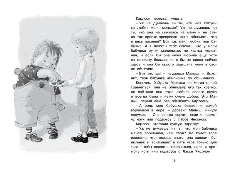 Земля такая огромная, и на ней столько домов! Большие и маленькие. Красивые и уродливые. Новостройки и развалюшки. И есть ещё совсем крошечный домик Карлсона, который живёт на крыше. Карлсон уверен, что это лучший в мире домик и живёт в нём лучший в мире Карлсон. Вторая книга трилогии про Малыша и Карлсона замечательной шведской писательницы Астрид Линдгрен.Характеристики