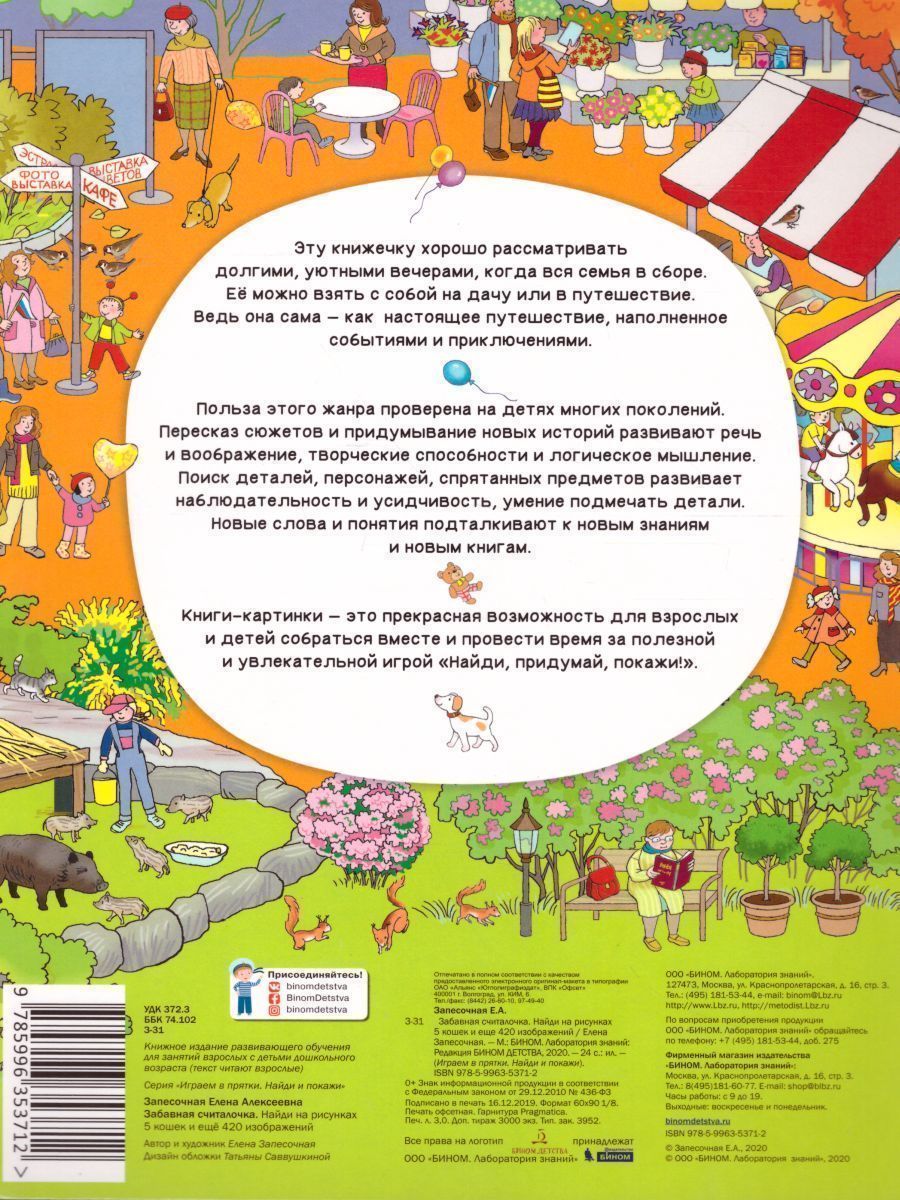 Новая серия "Найди и покажи"! Рассчитана на любой вкус и любой кошелек. В ней и большие альбомы на картоне, которые можно разглядывать долгими вечерами, и маленькие книжки-раскладушки, и тетрадки с увлекательными заданиями, и альбомчики, которые так удобно взять с собой на дачу или в путешествие. Польза этого жанра проверена на детях многих поколений. Разглядывание подробных сюжетных картинок развивает не только наблюдательность, но и речь, воображение, творческие способности.Характеристики