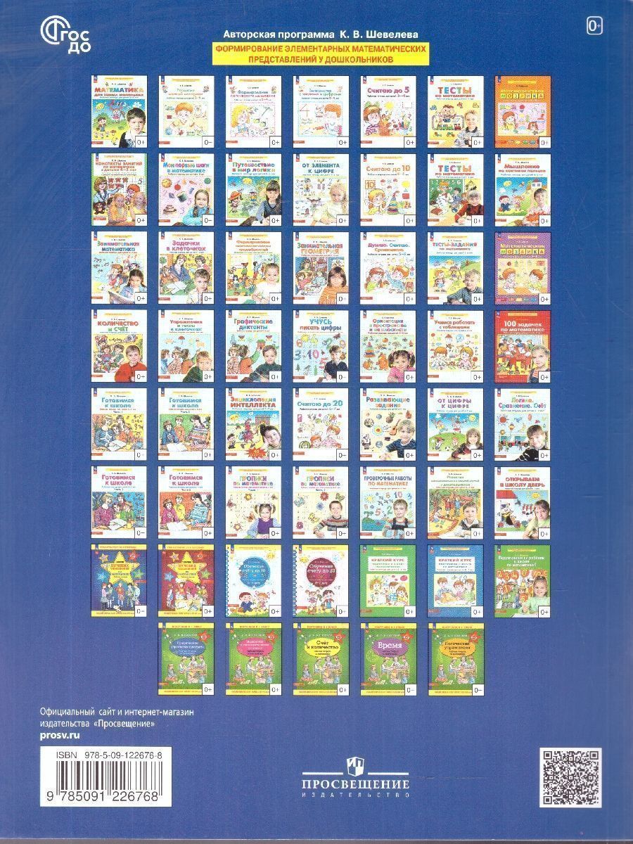 Проверочные работы по математике позволят определить уровень преддошкольной подготовки детей 6—7 лет по темам «Количество и счет», «Величина», «Ориентирование в пространстве», «Ориентирование во времени», «Логические задачи» в соответствии с программой «Формирование элементарных математических представлений у дошкольников».В случае необходимости педагог или родители могут принять меры по устранению пробелов в знаниях ребенка, предупредить его неуспеваемость в начальной школе. Книга окажет неоценимую помощь педагогам, воспитателям, гувернерам и родителям при подготовке детей к школе по математике. Рекомендуем!Характеристики