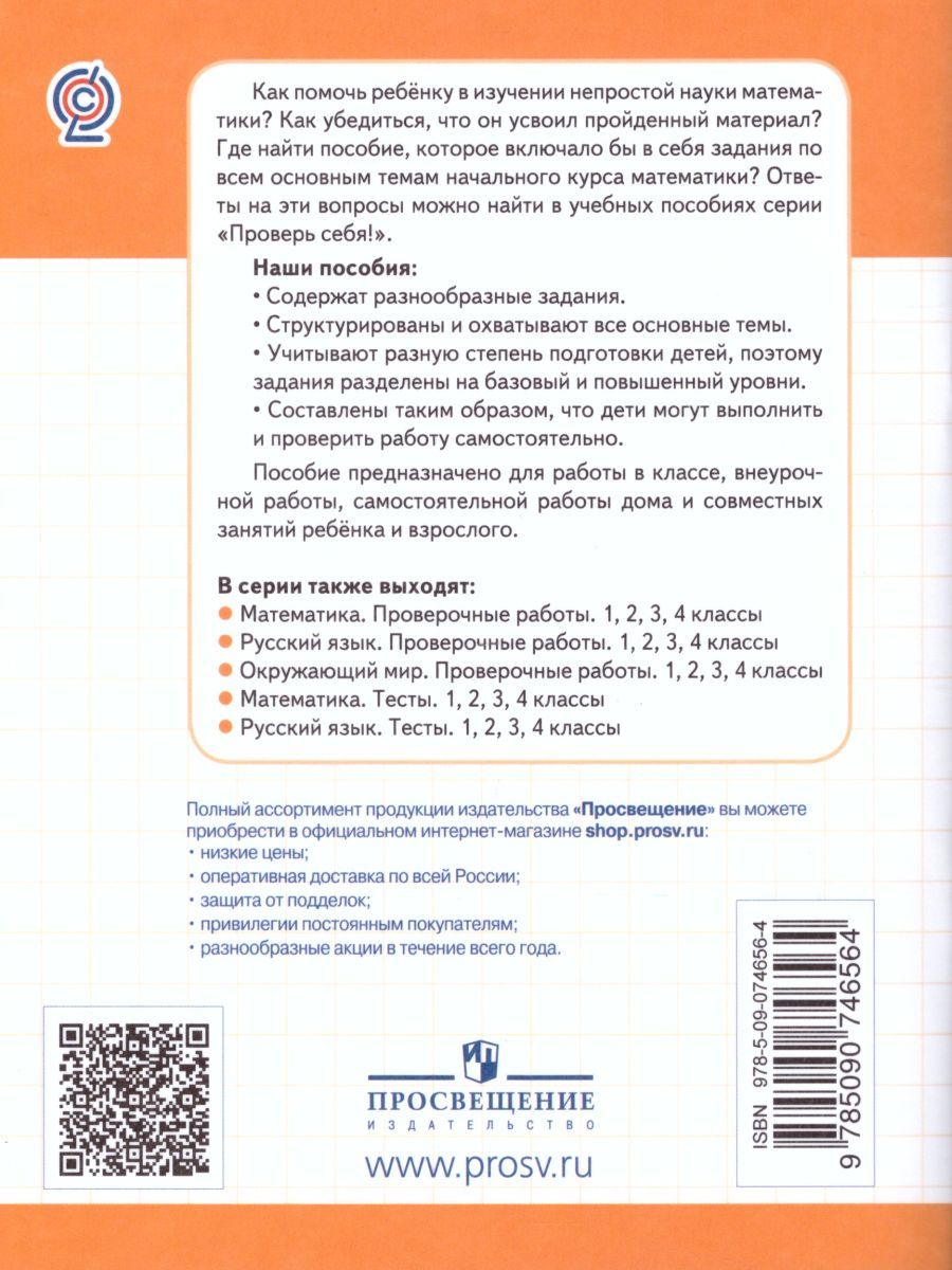 Рабочая тетрадь "Проверочные работы по математике. 1 класс" предназначена для текущего контроля освоения первоклассниками учебного предмета "Математика". Пособие соответствует Федеральному государственному образовательному стандарту, планируемым результатам курса математики в начальной школе и может быть использовано с различными учебно-методическими комплексами, включёнными в Федеральный перечень учебников. Тетрадь адресована учащимся и содержит разнообразные задания, структурированные по всем основным темам курса математики, учитывает разную степень подготовки детей (содержит задания базового и повышенного уровней сложности) и составлена таким образом, что дети могут выполнить и проверить работу самостоятельно. Пособие предназначено для работы в классе, внеурочной работы, для самостоятельной работы дома и совместных занятий ребенка и взрослого.Характеристики