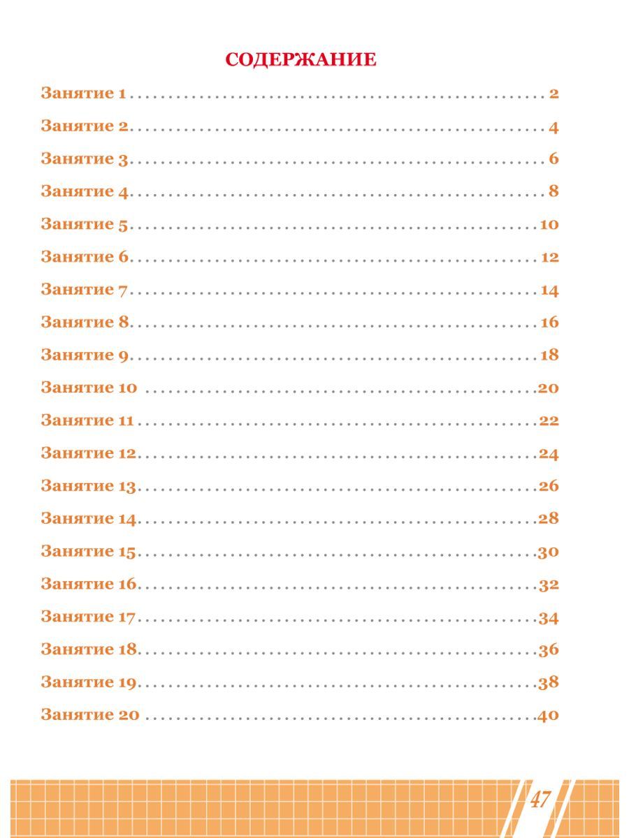 Подготовка ребёнка к школе – это фундамент для его дальнейшего обучения. Очень важно не только научить ребёнка считать, но и развивать его логическое мышление, учить ориентироваться в пространстве, сравнивать предметы, находить общие признаки и различия, узнавать и называть геометрические фигуры. Чем обширнее будет кругозор у ребёнка, тем быстрее он адаптируется к новым условиям и к новой для себя роли первоклассника. Данное пособие включает в себя задания по развитию мелкой моторики рук, внимания, пространственных представлений, анализа и синтеза с целью подготовки детей 6-7 лет к обучению в первом классе. В книге 20 занятий на знакомство с цифрами и числами, составом чисел первого десятка; на копирование и завершение рисунков. Каждое занятие включает в себя задания, направленные на формирование у детей устойчивого представления о цифре и её образе. Задания помогут ребёнку научиться ориентироваться на листе в клетку, будут способствовать развитию усидчивости и самоконтроля. Пособие предназначено детям 6-7 леХарактеристики