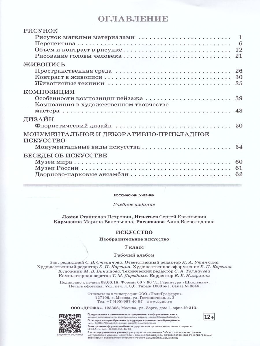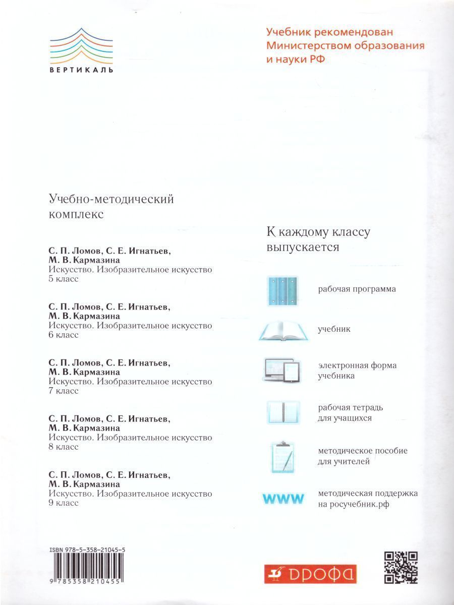 Рабочий альбом входит в УМК С. П. Ломова, С. Е. Игнатьева, М. В. Кармазиной «Искусство. Изобразительное искусство. 5–9 классы» и предназначен в основном для работы с красками. Учебники УМК разработаны в системе научно-педагогической школы академика В. С. Кузина на базе Федерального государственного образовательного стандарта основного общего образования и обеспечивают преемственность обучения изобразительному искусству в начальной и основной школе. В рабочем альбоме представлены упражнения и учебно-творческие задания, сопровождаемые методическими ключами (подсказками) для успешного освоения практических знаний и умений в области изобразительного искусства. Некоторые задания содержат краткие научно-теоретические материалы и пояснения.Характеристики