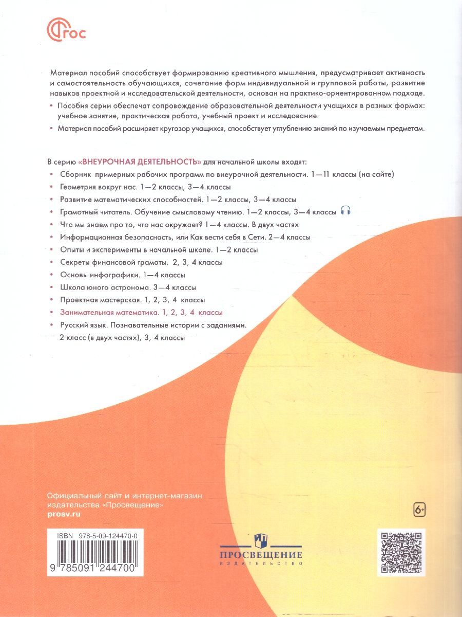 Пособие может быть использовано в начальной школе при проведении занятий математического факультатива, кружка, олимпиады, клуба "Эрудит", интеллектуального марафона и других форм организации внешкольной деятельности учащихся. Материалы пособия помогут учителю не только при подготовке и проведении указанных форм организаций деятельности, но и будут способствовать учёту индивидуальных особенностей и потребностей обучающихся в ходе организации внеурочной деятельности. Задания, включённые в рабочую тетрадь, способствуют формированию у детей самостоятельности, наблюдательности, геометрической зоркости и умения рассуждать, а также создают условия для развития интереса к математике, математического кругозора и эрудиции учащихся.Характеристики