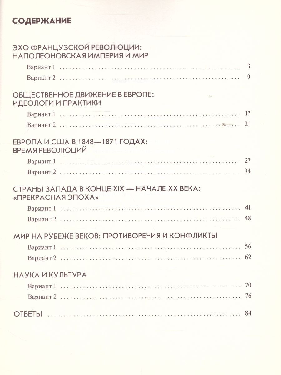 Всеобщая история 9 класс. Тематические контрольные работы