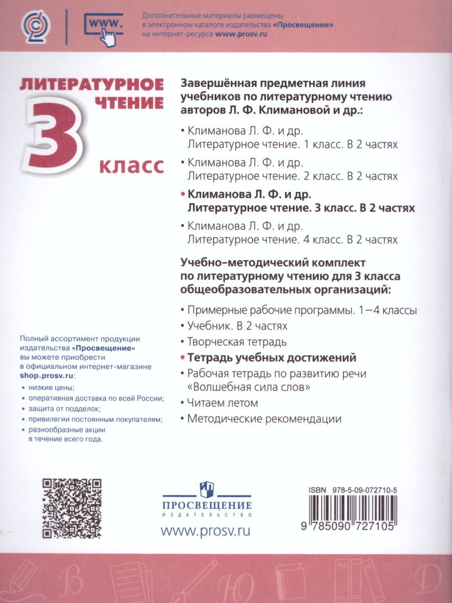 Литературное чтение 3 класс. Тетрадь учебных достижений к учебнику Л.Ф. Климановой. УМК "Перспектива". ФГОС
