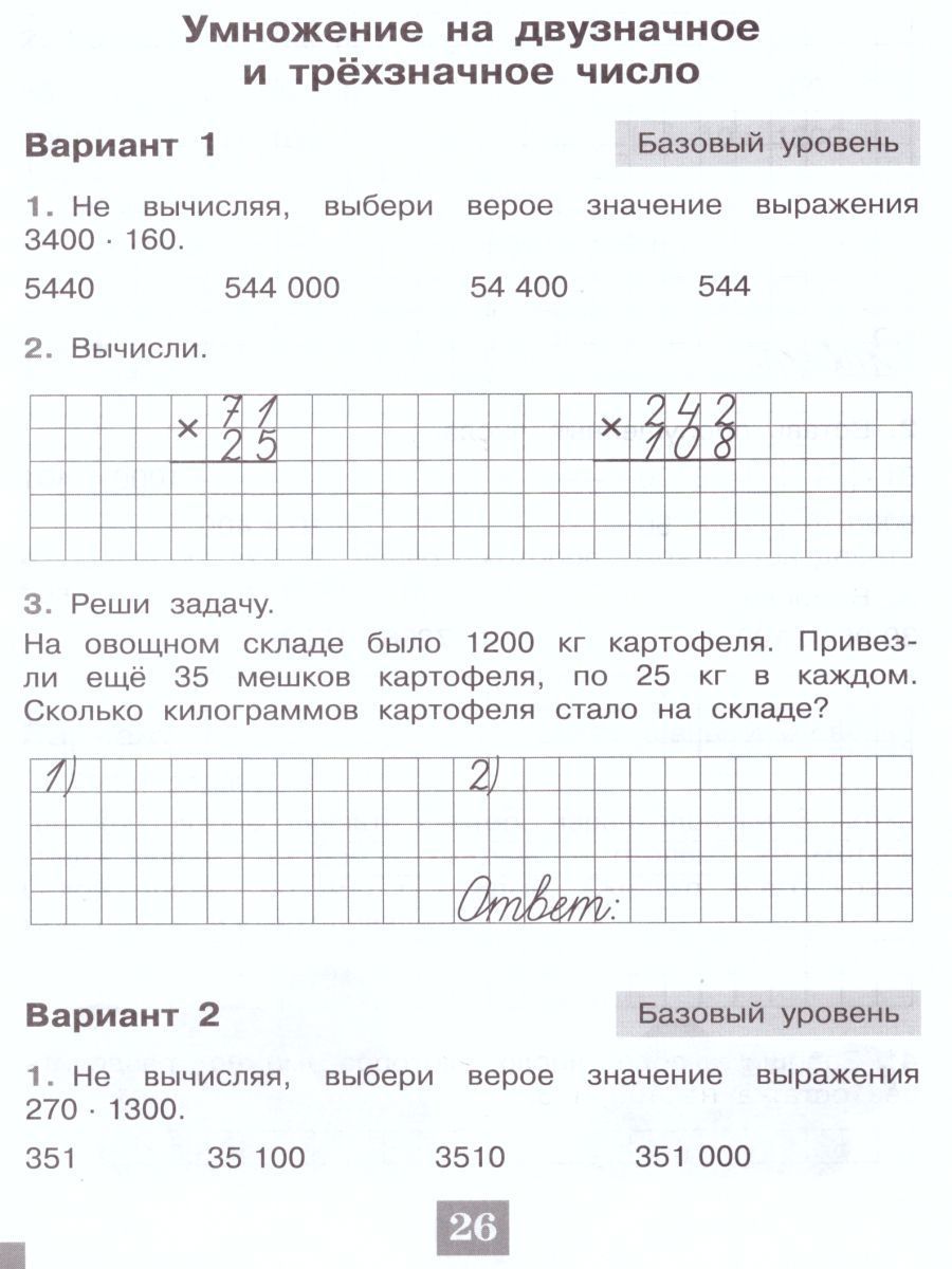 Математика 4 класс. Проверочные работы. Проверь себя!