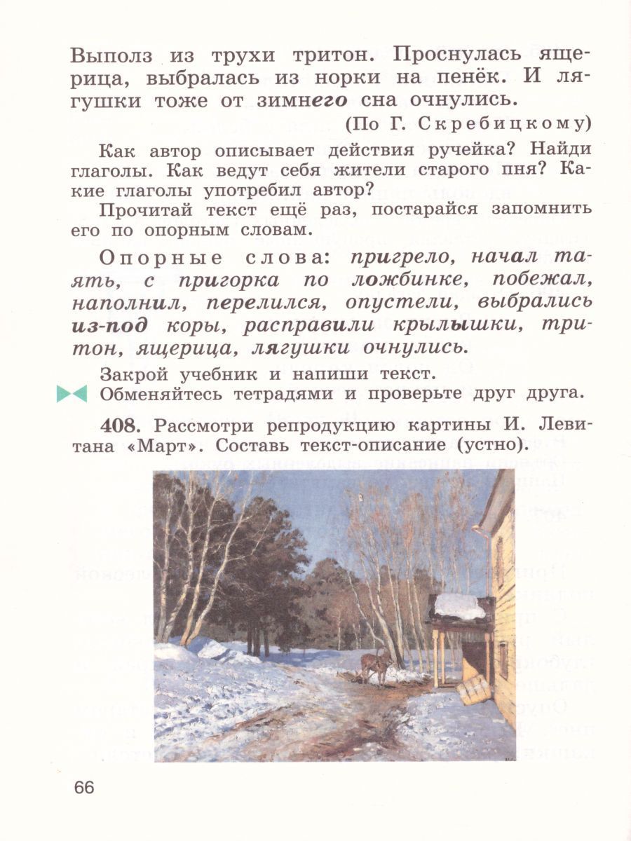 Учебник рекомендован Министерством образования и науки Российской Федерации, включён в Федеральный перечень учебников. В комплексе с учебником издаются "Тетрадь для упражнений по русскому языку и речи", методическое пособие для учителя и справочник "Русский язык. 1—4 классы".Характеристики