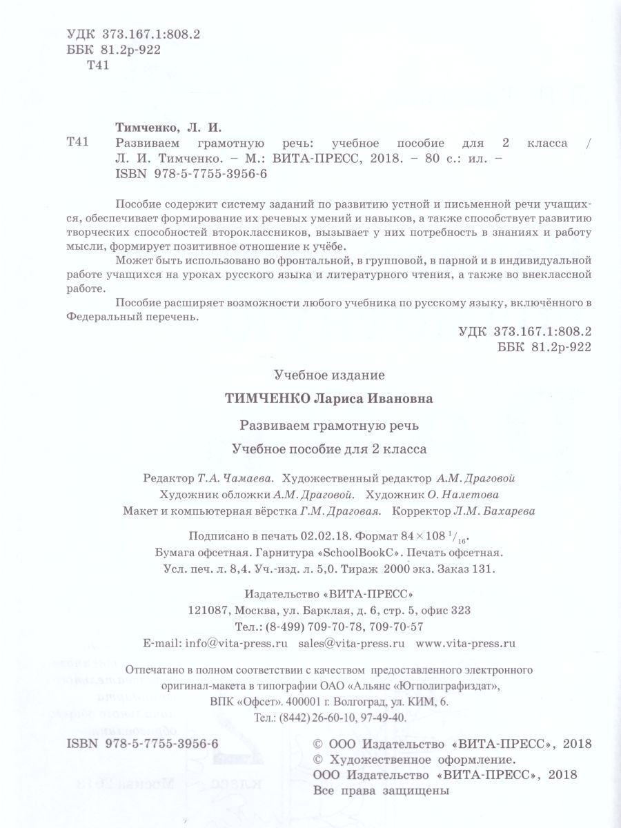 Пособие содержит систему заданий по развитию устной и письменной речи учащихся, обеспечивает формирование их речевых умений и навыков, а также способствует развитию творческих способностей второклассников, вызывает у них потребность в знаниях и работу мысли, формирует позитивное отношение к учёбе. Может быть использовано во фронтальной, в групповой, в парной и в индивидуальной работе учащихся на уроках русского языка и литературного чтения, а также во внеклассной работе. Пособие расширяет возможности любого учебника по русскому языку, включённого в Федеральный перечень.Характеристики