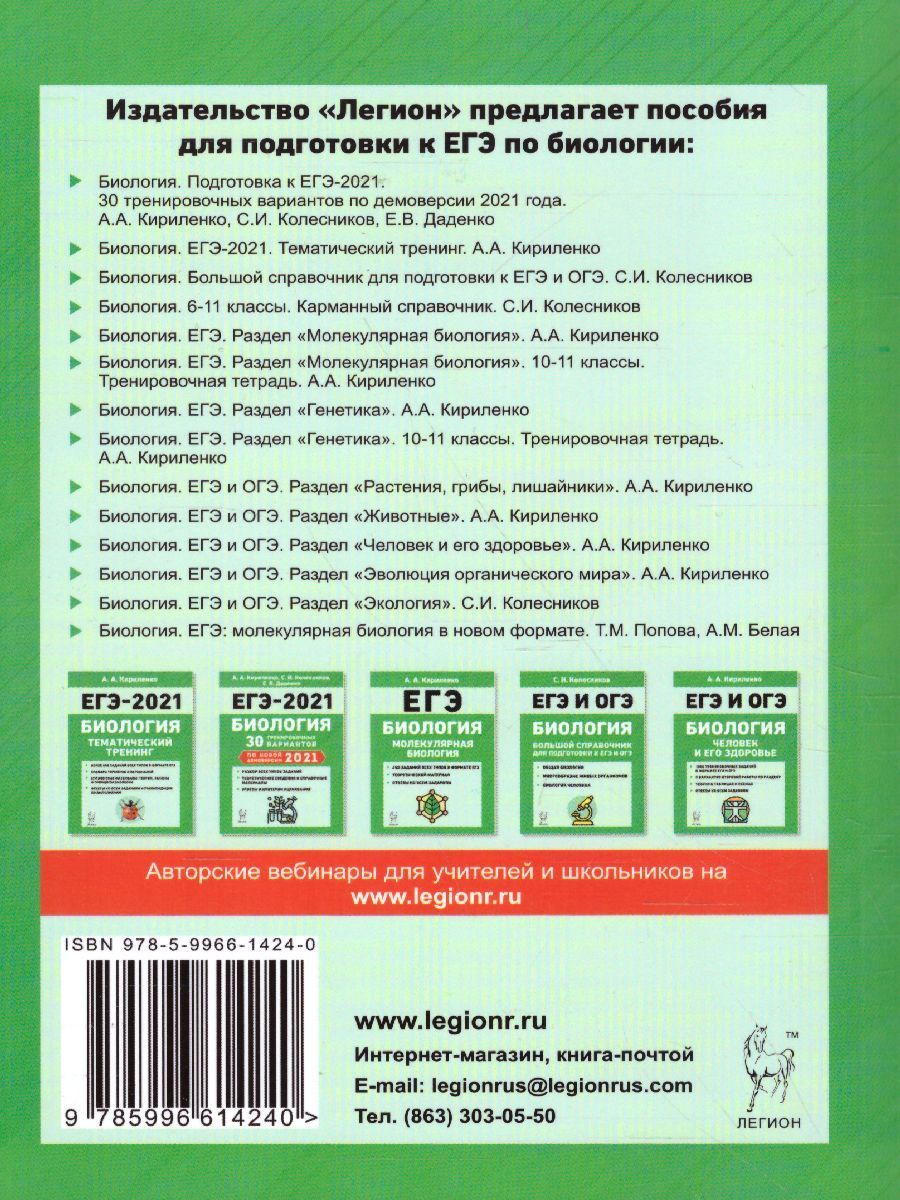 В пособии представлен раздел биологии "Генетика". Книга содержит: o теоретический материал, представленный в наглядных схемах, таблицах и рисунках; o более 300 заданий всех типов в формате ЕГЭ, сгруппированных по типам; o ответы ко всем заданиям с комментариями. Книга поможет учащимся 10-11-х классов подготовиться к выполнению заданий ЕГЭ по разделу "Генетика". Учителя и методисты могут использовать учебное пособие для систематизации изученного материала, выявления возможных пробелов в подготовке выпускников и их ликвидации, организации эффективного повторения.Характеристики