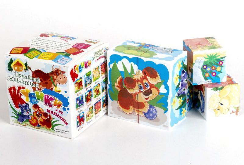 Кубики "Домашние животные и их малыши" (без обклейки) 8 шт.
