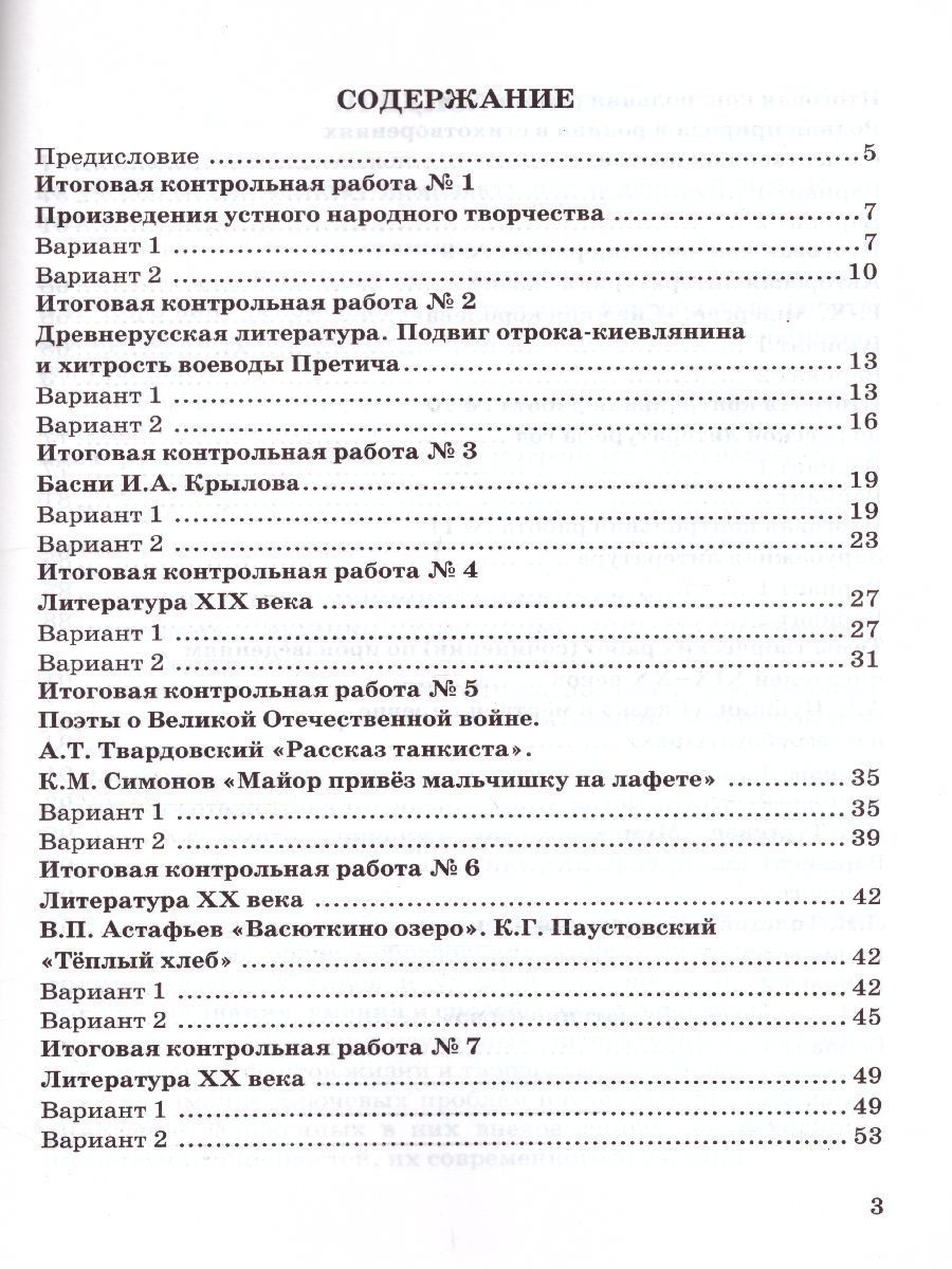 Литература 5 класс. Контрольные работы. ФГОС