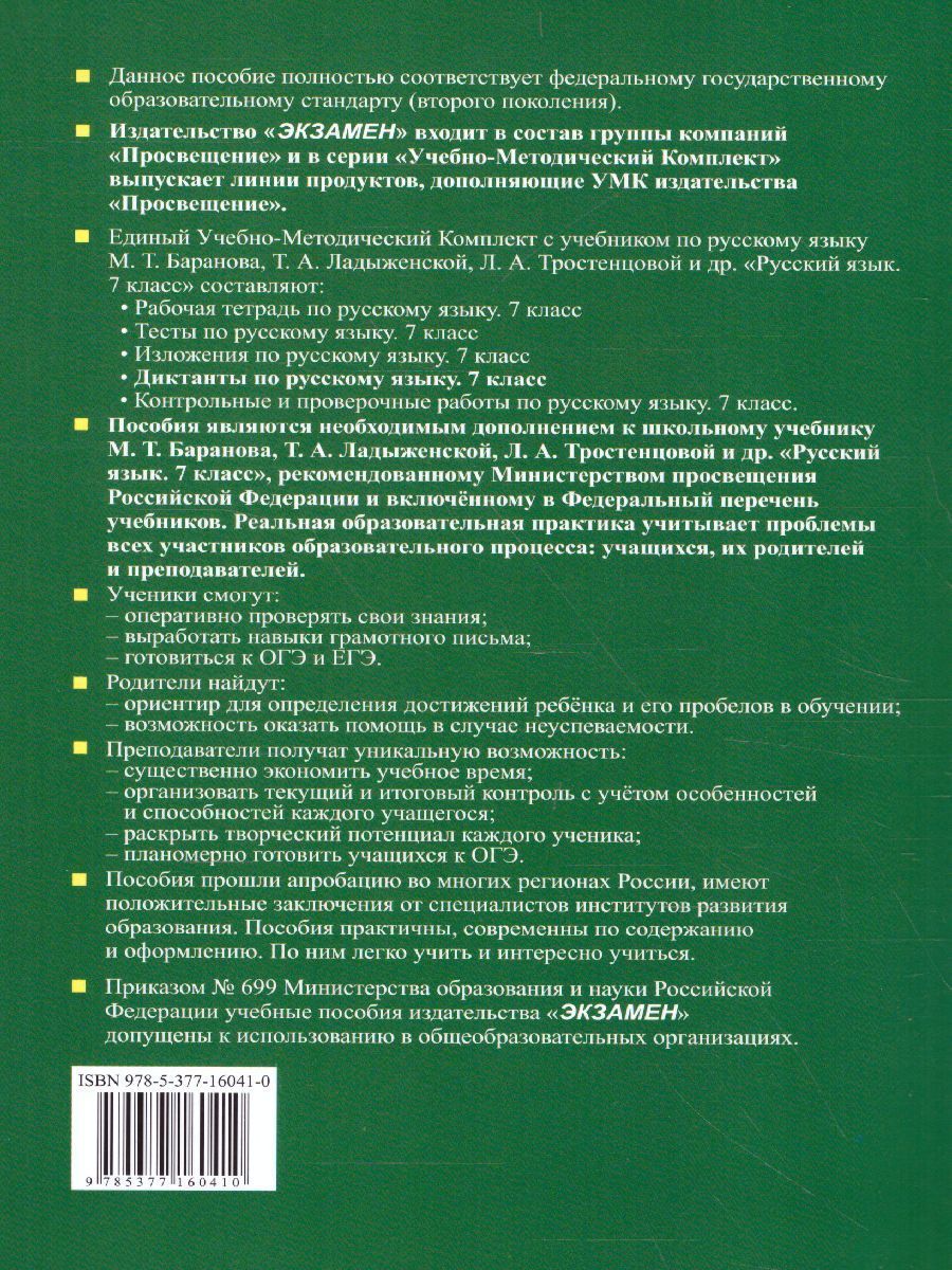 Русский язык 7 класс. Диктанты. ФГОС
