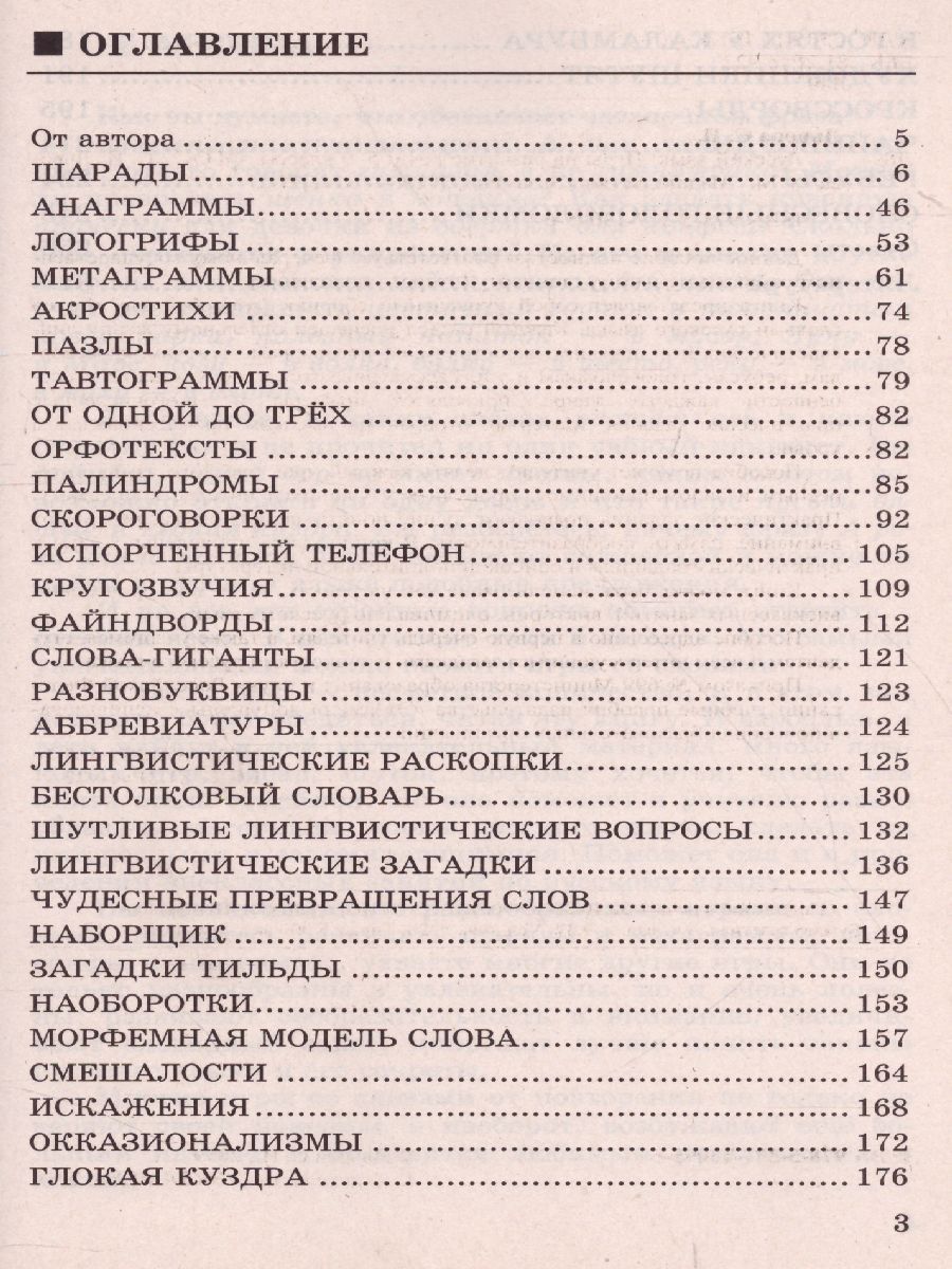 Данное пособие полностью соответствует федеральному государственному образовательному стандарту (второго поколения). Книга представляет собой уникальный сборник разнообразных игр со словами русского языка. Каждый раздел посвящен отдельному жанру лингвистических игр: шарадам, акростихам, скороговоркам, загадкам, кроссвордам, ребусам, головоломкам и т.п. Рассматриваются происхождение и особенности каждого жанра, приводятся примеры и многочисленные практические задания. Материал отобран на высоком профессиональном уровне. Пособие поможет учителю сделать каждый урок русского языка интересным и запоминающимся, пробудить у учащихся интерес к предмету. Практические задания позволяют лучше понять законы языка, развивают внимание, память, сообразительность. В конце книги приведены ответы к практическим заданиям и список дополнительной литературы. Книга может быть использована как на уроках, так и при проведении внеклассных занятий, викторин, олимпиад по русскому языку. Пособие адресовано в первую очередь учителям, а также учащимся, студентам и всем интересующимся загадками и тонкостями русского языка.Характеристики