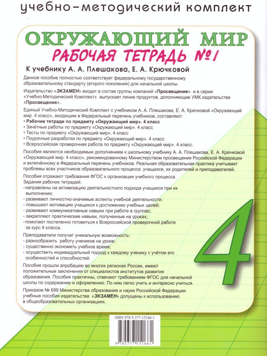 Окружающий мир 4 класс. Рабочая тетрадь № 1. ФГОС