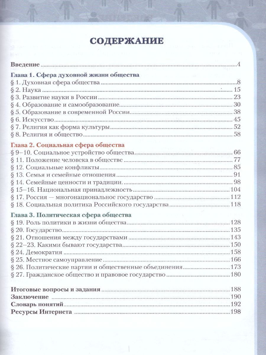 Учебное издание знакомит обучающихся с особенностями развития духовной, социальной и политической сфер жизни общества в их взаимосвязи друг с другом. Содержание и методический аппарат учебного издания способствуют формированию у школьников целостных представлений о мире и человеке, раскрывают особенности духовной, социальной и политической сфер жизни общества, помогают обучающимся осознать своё место и роль в социальной группе. Учебное издание соответствует ФГОС ООО и Примерной основной образовательной программе основного общего образования (ПООП ООО, 2015). Издание предназначено для общеобразовательных организаций: школ, гимназий и лицеев.Характеристики