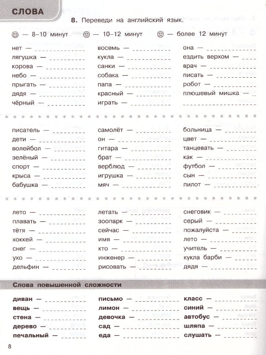 Книга "Быстро выучим английские слова. Обязательный лексический уровень. 2 класс" создано известными педагогами-практиками О. В. Узоровой и Е. А. Нефёдовой. Материал пособия соответствует ФГОС и программе обучения английскому языку в начальной школе. Базовый минимум английских слов и выражений по разным темам за 2 класс представлен таким образом, что даёт возможность ученикам быстро выучить их значение и написание. Учителя и родители могут отметить время, которое ребёнок затратил на выполнение заданий. На каждой странице дано контрольное время Для начального образования.Характеристики