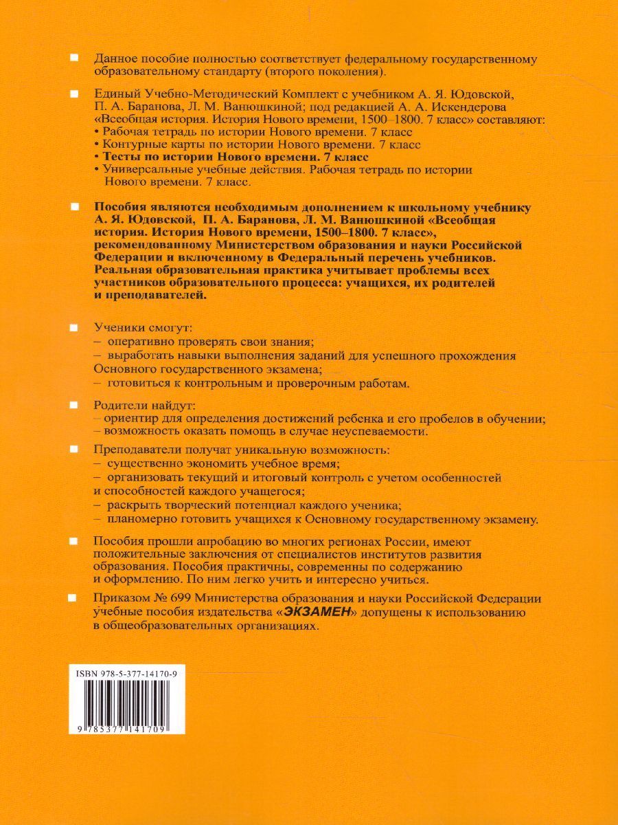 История Нового времени 7 класс. Тесты. К учебнику А. Я. Юдовской. ФГОС