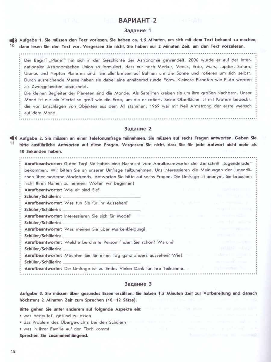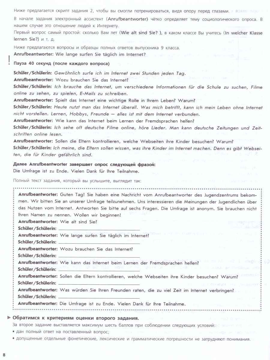 Немецкий язык 9 класс. Устная часть ОГЭ