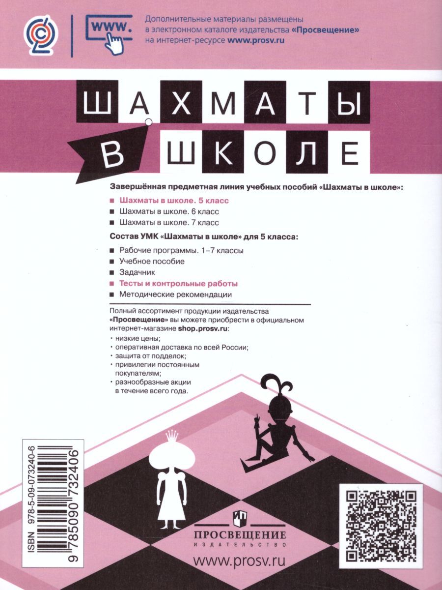 Сборник тестов и контрольных работ является составной частью комплекта по шахматам для пятого года обучения. В пособие включены задания, направленные как на закрепление полученных на уроке знаний, так и на оценку их глубины. Структура практического пособия «Тесты и контрольные работы» отражает основные тематические разделы, представленные в учебном пособии «Шахматы в школе. Пятый год обучения». В конце сборника к каждой контрольной точке даны ответы.Характеристики