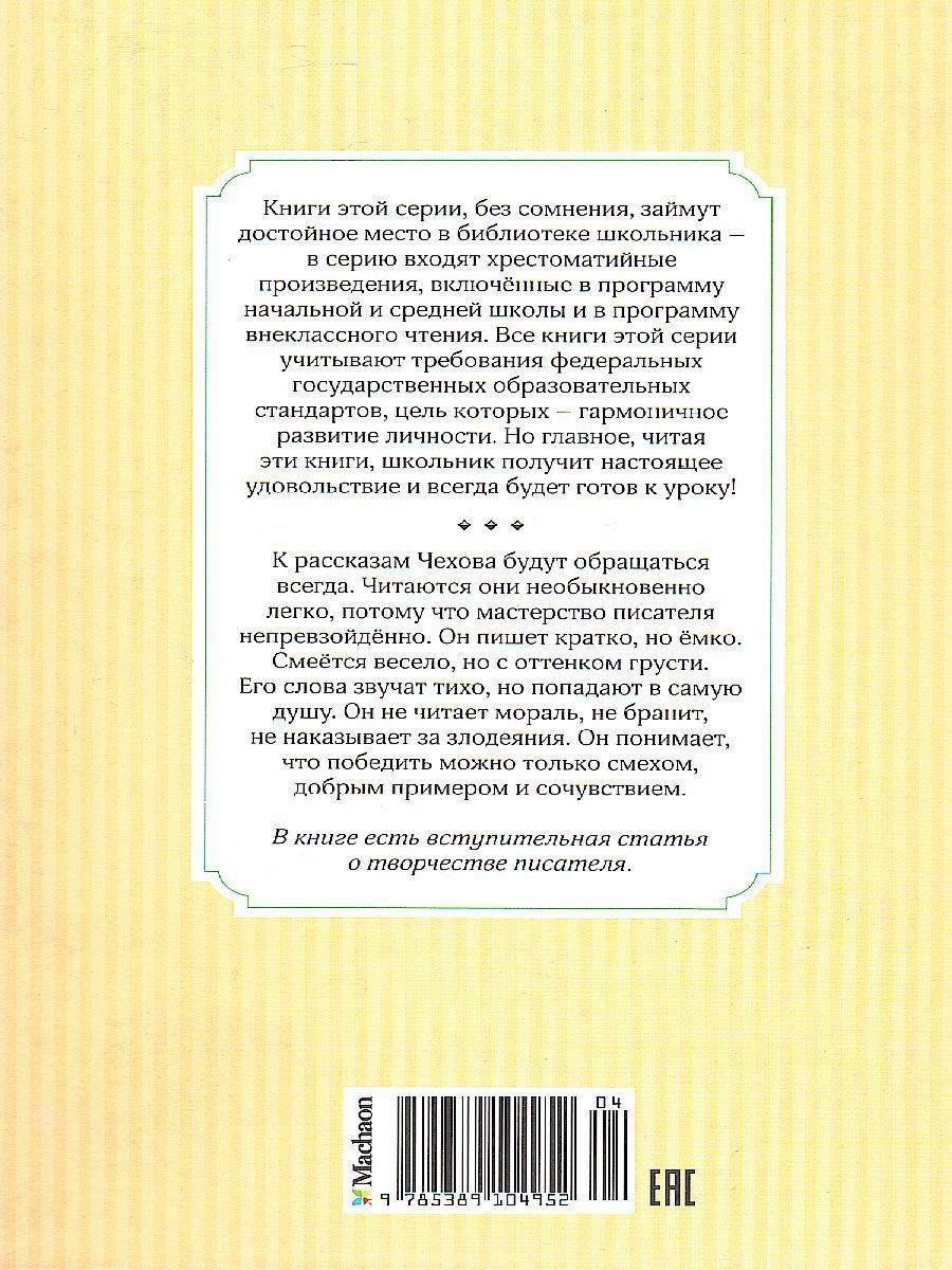 В книге собраны самые известные и любимые рассказы А.П.Чехова. В них юмор сочетается с грустью и состраданием. Простые и тихие слова точнее всего отражают суть, попадают в самое сердце.Характеристики