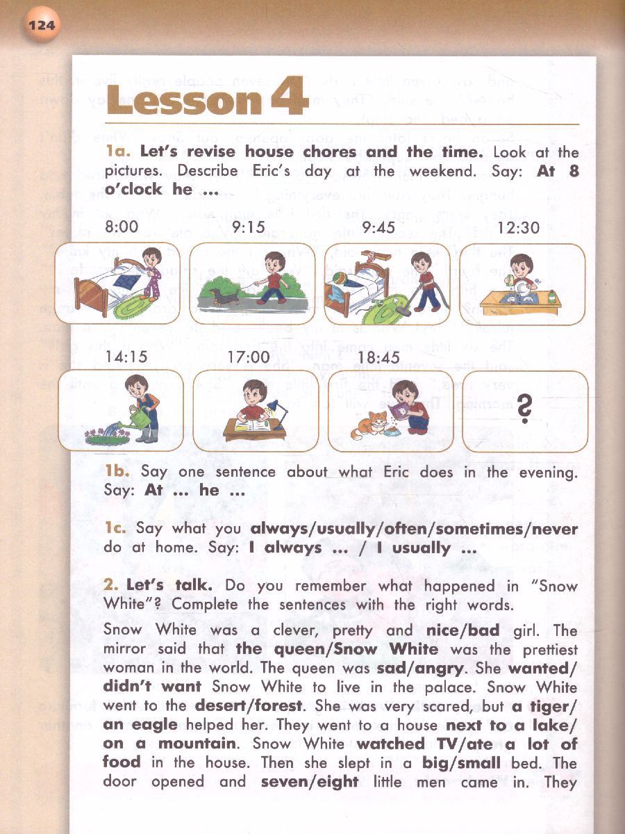 Учебно-методический комплект "Английский язык. 4 класс" предназначен для учащихся 4 класса общеобразовательных организаций. Учебник состоит из 9 тематических циклов и содержит тренировочные упражнения по овладению речевыми образцами, лексикой, речевыми клише, образцами диалогов, кратких монологических высказываний. Последний цикл учебника знакомит учащихся со сказками. Важная составляющая линии учебников - персонажи, встречающиеся в каждом издании и действующие в различных ситуациях. Учебник рассчитан на 3 часа в неделю и ориентирован на достижение первого уровня коммуникативной компетенции. В комплект входят: рабочая программа, учебник, тетрадь-тренажёр (рабочая тетрадь), книга для учителя, тетрадь-экзаменатор, аудиокурс (mp3) к учебному пособию и рабочей тетради, электронная форма учебника.Характеристики