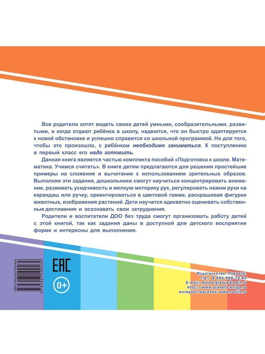 Все родители хотят видеть своих детей умными, сообразительными, развитыми, и когда отдают ребёнка в школу, надеются, что он быстро адаптируется к новой обстановке и успешно справится со школьной программой. Но для того, чтобы это произошло, с ребёнком необходимо заниматься. К поступлению в первый класс его надо готовить. Данная книга является частью комплекта пособий «Подготовка к школе. Математика. Учимся считать». В книге детям предлагаются для решения простейшие примеры на сложение и вычитание с использованием зрительных образов. Выполняя эти задания, дошкольники смогут научиться концентрировать внимание, развивать усидчивость и мелкую моторику рук, регулировать нажим руки на карандаш или ручку, ориентироваться в цветовой гамме, раскрашивая фигурки животных, изображения растений. Дети научатся адекватно оценивать собственные достижения и осознавать свои затруднения. Родители и воспитатели ДОО без труда смогут организовать работу детей с этой книгой, так как задания даны в доступной для детского восприятияХарактеристики