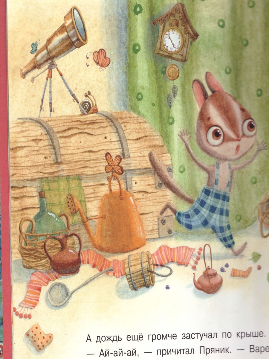 Барсук Пряник и Бурундук Вареник каждый раз попадают в истории, которые обязательно случаются в жизни каждого малыша. Поэтому сказки про них так важно читать вслух, вместе с ребенком рассматривая картинки и обсуждая ситуации, в которые попадают маленькие герои. В них совсем нет дидактики и нравоучений. Они обращены к душе каждого ребенка и потому от них невозможно оторваться. Эти книги будут полезна и для родителей: вы сможете говорить с ребенком на важные темы на языке сказки; у вас появляется прекрасная возможность сделать это ненавязчиво, в игровой форме; истории совсем небольшие, вам потребуется совсем немного времени, чтобы и прочитать её и поговорить с малышом; прекрасная возможность узнать, о чем думает и что чувствует ваш ребенок; автор историй - Ирина Зартайская и художник - Олег Гончаров - хорошо известны всем любителям хорошей детской книги, они молоды и талантливы и потому так понятны поколению родителей 25+ . История "Дождь" о том, что страхи обязательно проходят - так же как проходит дождь. А потом так здорово смеяться над ними вместе с лучшим другом...Характеристики