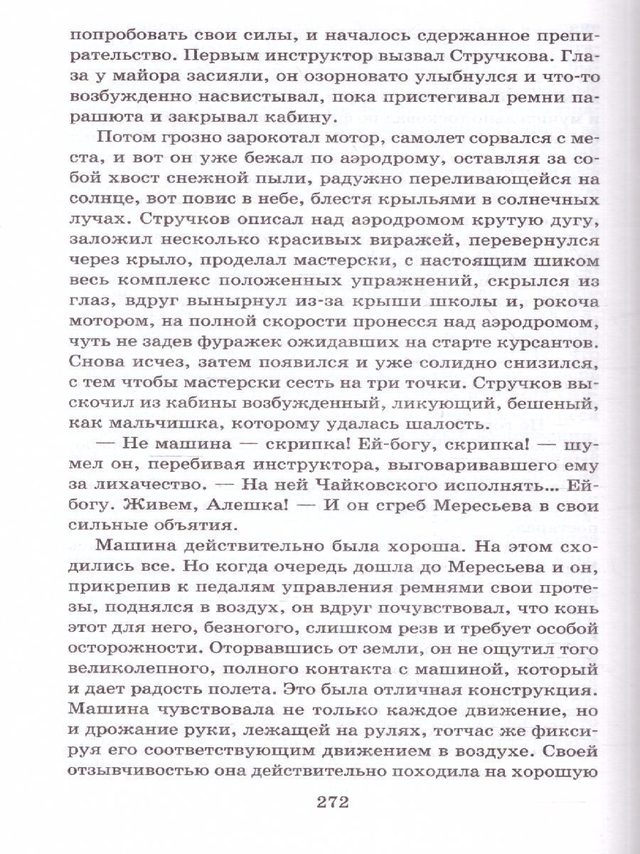 Борис Николаевич Полевой (1908—1981) — советский писатель, сценарист. Во время Великой Отечественной войны работал военным корреспондентом. Этот опыт лёг в основу всех произведений писателя. Самое известное произведение Б. Н. Полевого "Повесть о настоящем человеке" (1941) основано на реальных событиях. Автор был удостоен Сталинской премией, а книга стала классикой литературы о Великой Отечественной войне. Это волнующая история о лётчике Алексее Маресьеве (в книге — Мересьев). Повесть о настоящем Герое Советского Союза, самолёт которого был сбит в воздушном бою. Герой оказывается в лесу без еды и воды, а позже, в госпитале, ему ампутируют обе ноги. Но это не мешает Мересьеву вернуться к прежней жизни и продолжить летать на самолёте-истребителе. Лётчик Мересьев — сильный, смелый человек, своим подвигом он показывает, как можно остаться Настоящим человеком в самых нечеловеческих условиях.Характеристики