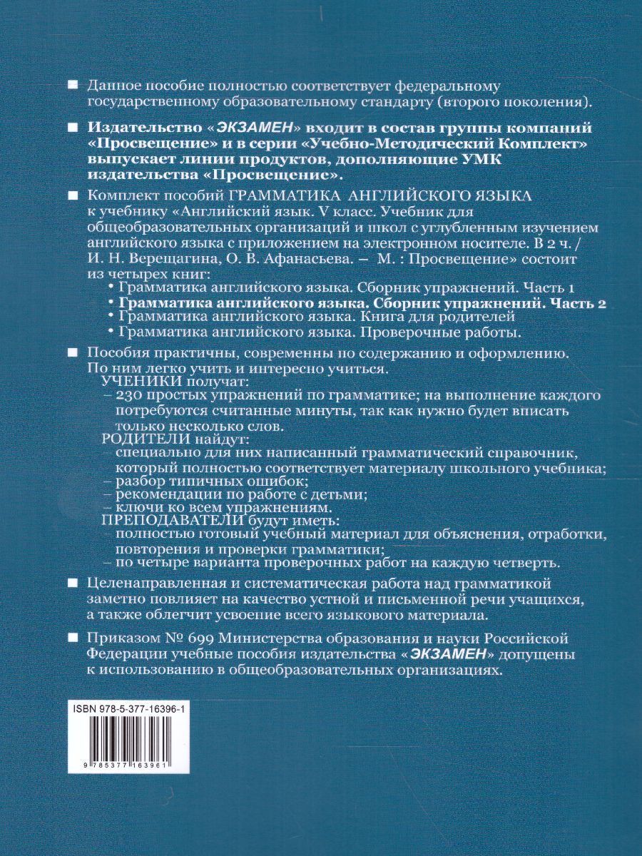 Грамматика Английского языка 5 класс. Сборник упражнений. Часть 2 (к новому ФПУ). ФГОС