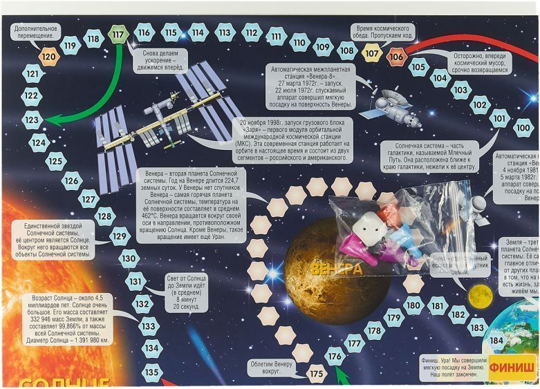 Настольная игра-ходилка для 2-4-х игроков. В комплекте: игровое поле, 4 фишки, кубик. Размер игрового поля: 59х42 см. Материалы: картон, пластмасса.Характеристики