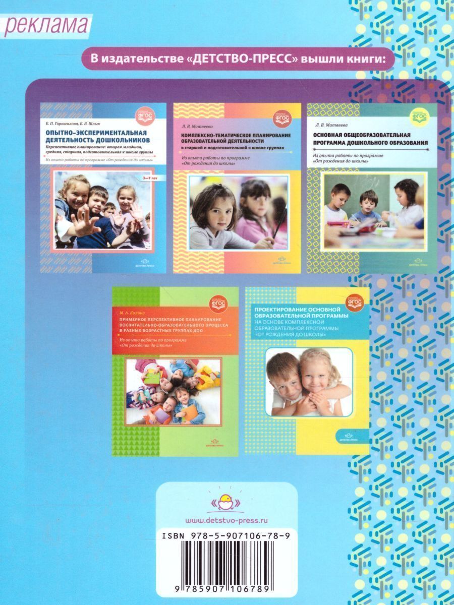 Перспективное планирование образовательной деятельности составлено на основе опыта практической работы в соответствии с ФГОС ДО и с учетом индивидуальных особенностей детей 3-7 лет. Представлен примерный план работы по образовательной области "Познавательное развитие", а также конспекты образовательной деятельности. Издание предназначено воспитателям дошкольных учреждений, работающим с детьми во второй младшей, средней, старшей и подготовительной к школе группах.Характеристики