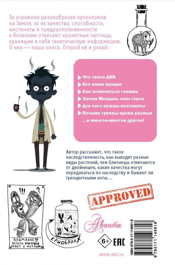 Книга Дмитрия Шитикова "Её величество ДНК" расскажет о крохотных частицах, хранящих генетическую информацию и отвечающих за огромное разнообразие организмов на Земле: за их качества, способности, инстинкты и предрасположенности к болезням. За то, что мы похожи на своих родителей и способны наследовать черты их характера или внешности. Автор расскажет, что такое наследственность, зачем Грегор Мендель сеял горох, бывают ли трехцветные коты, существует ли ген гениальности, как ученые скрещивают гены разных организмов, и еще много-много всего... Для всех, кто увлекается биологией и хочет узнать о генетике больше. Для среднего школьного возраста.Характеристики