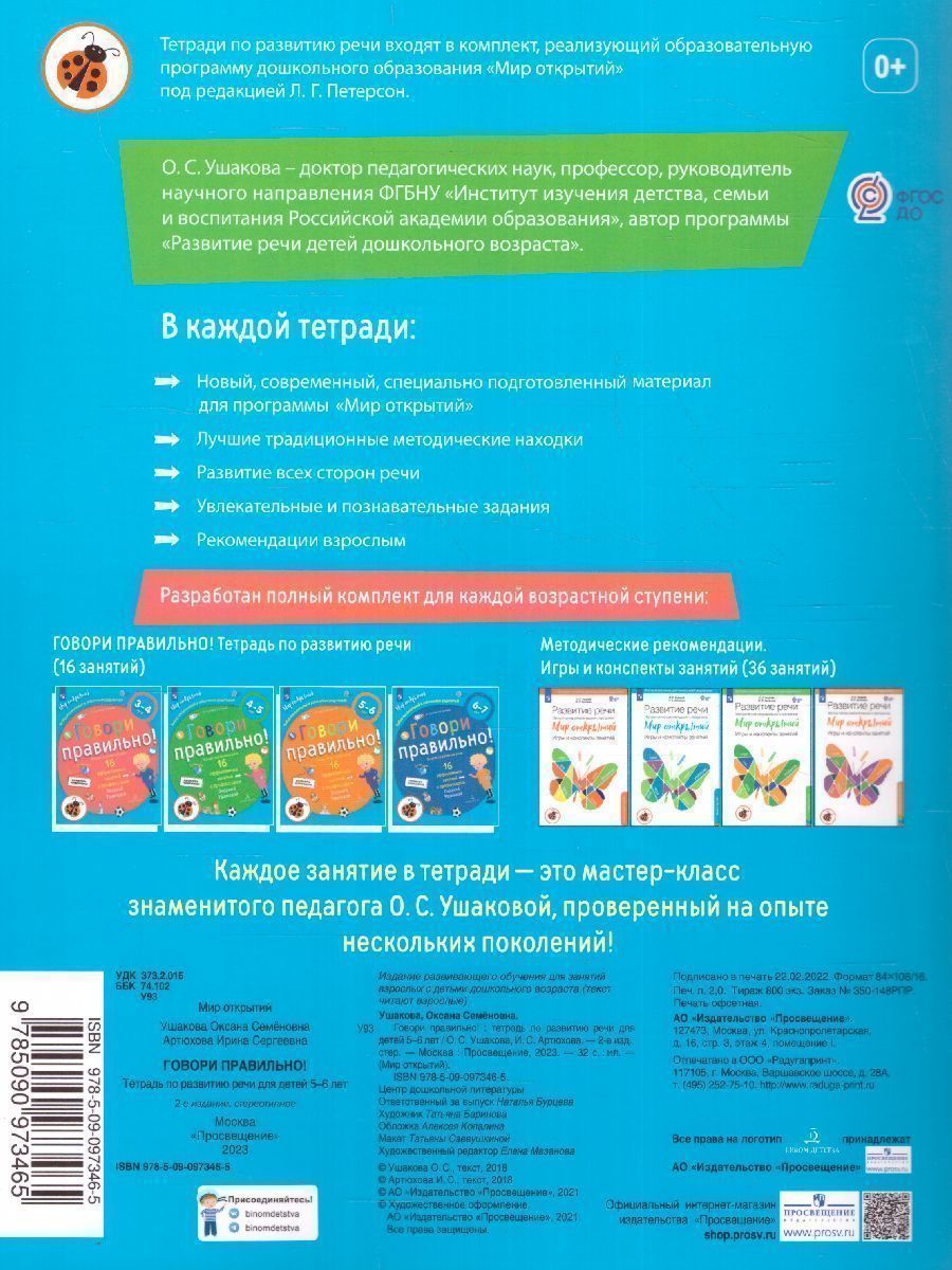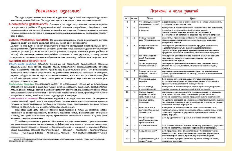 Тетрадь по развитию речи позволяет педагогу организовать системные и эффективные занятия в подготовительной группе детского сада. 16 занятий в тетрадке — это 16 игр, которые понравятся не только воспитателям, но и родителям. Все занятия построены на материале детских сказок, стихов, загадок. Яркие картинки, пиктограммы и специальные пояснения для взрослых написаны легко, без использования научной терминологии. Задания направлены на обогащение лексики малышей, решают задачу высвобождения речи, закладывают основы вербального общения. Выпущено 4 тетради на каждую возрастную группу. Тетрадь предназначена для занятий в детском саду и дома с детьми 5–6 лет. Выходит в комплекте с конспектами занятий.Характеристики