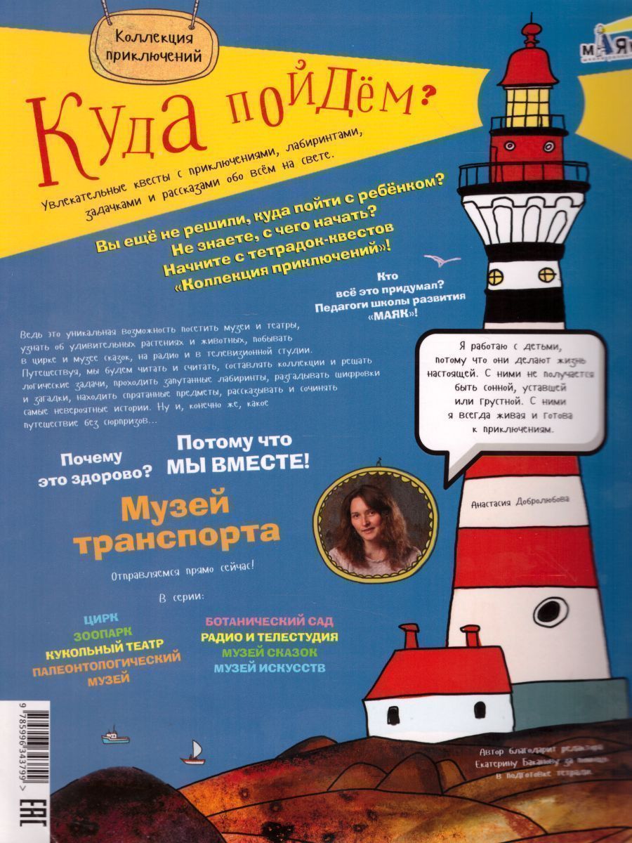 Вы еще не решили куда пойти с ребёнком? Не знаете, с чего начать? Начните с тетрадок-квестов«Коллекция приключений"! Ведь это уникальная возможность посетить музеи и театры, узнать об удивительных растениях и животных, побывать в цирке и музее сказок, на радио и в телевизионной студии. Путешествуя, мы будем читать и считать, составлять запутанные лабиринты, разгадывать шифровки и загадки, находить спрятанные предметы, рассказывать и сочинять самые невероятные истории. Серия разработана совместно с педагогами«Школы развития "Маяк".Характеристики