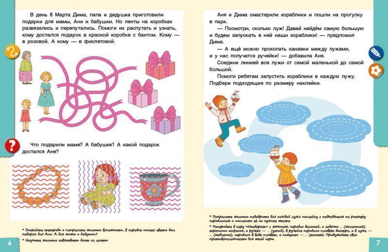 Комплект тетрадей "Давай поговорим!" разработан специально для программы дошкольного образования "Мир открытий". С. Батяева и Е. Мохирева — практикующие логопеды. Их тетради — это результат каждодневной работы с детьми, поэтому в них мало скуки, а много игры, интересных идей и заданий, фантазии. Комплект рассчитан на целый год занятий с малышами 3–4 лет. Тетради соответствуют требованиям ФГОС дошкольного образования, заниматься по ним можно как в детском саду, так и дома. В тетрадях можно и нужно рисовать, раскрашивать, приклеивать наклейки, что всегда нравится детям 3–4 лет. Но самое главное — все задания легко превращаются в настоящие живые игры за границами тетрадей! На прогулке в парке и дома на кухне, в магазине и детском кафе. С мячом, с тетрадкой и карандашами, с игрушками, одеждой, кастрюльками и сковородками. Играйте и говорите, общайтесь, обсуждайте всё, что видите вокруг, слушайте внимательно, будьте вместе со своими детьми.Характеристики