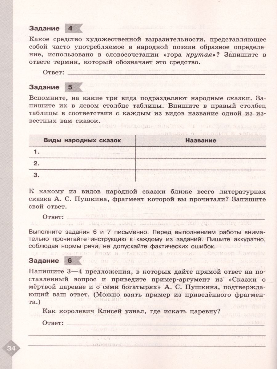 Литература 5 класс. Диагностические работы