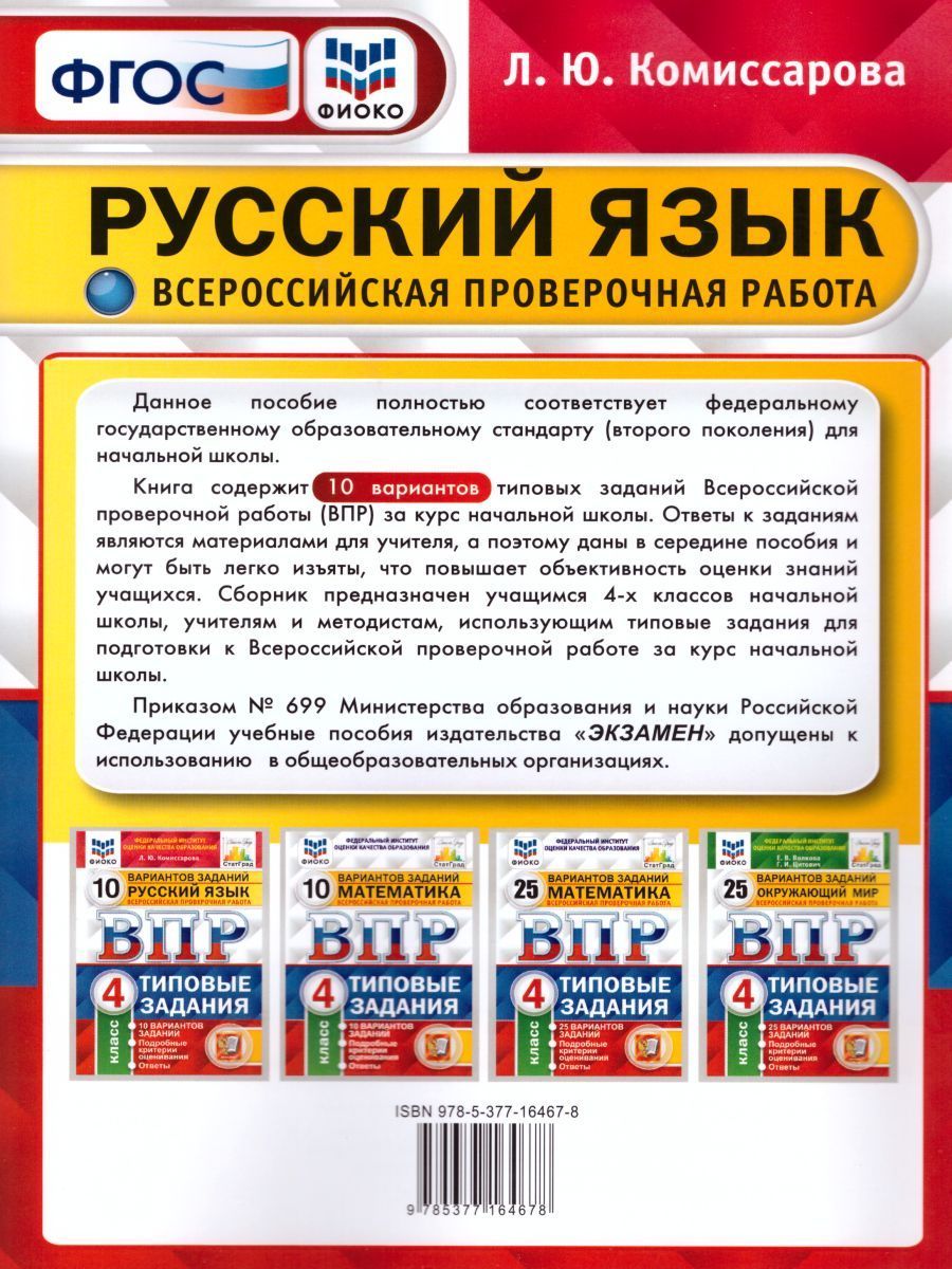 ВПР. Русский язык 4 класс. 10 вариантов. Типовые задания. ФГОС