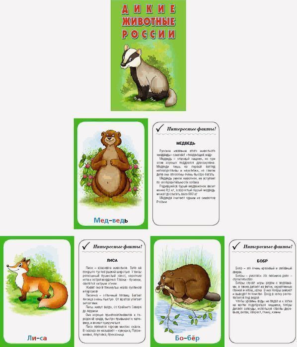 Карточки. Дикие животные России (интересные факты о каждом животном)