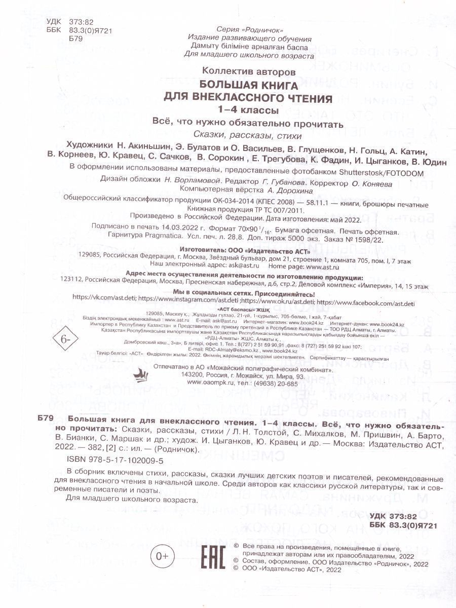 Родничок. Большая книга для внеклассного чтения 1-4 класс. Всё, что обязательно нужно прочитать
