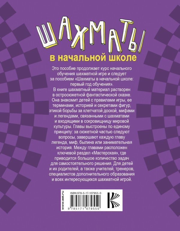 Это пособие продолжает курс начального обучения шахматной игре и следует за пособием "Шахматы в начальной школе: первый год обучения". В книге шахматный материал растворен в остросюжетной фантастической сказке. Она знакомит детей с правилами игры, ее терминами, историей и секретами фигур, этикой борьбы за клетчатой доской, мифами и легендами, связанными с шахматами и входящими в сокровищницу мировой культуры. Для детей и их родителей.Характеристики