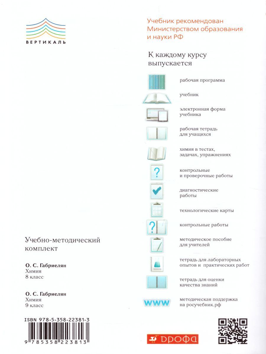 Пособие является частью учебного комплекса по химии, основа которого учебник О. С. Габриеляна «Химия. 8 класс», переработанный в соответствии с ФГОС. Учебное издание состоит из текстов контрольных и проверочных работ, соответствующих программе по химии для 8 класса О. С. Габриеляна. Предназначено для проведения текущего и итогового контроля по основным темам курса.Характеристики