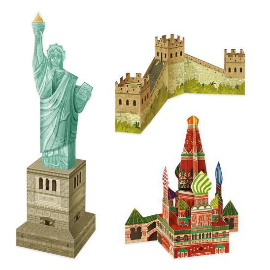 Эта книга отправит вас в путешествие по миру, и вы узнаете множество любопытных фактов о самых знаменитых сооружениях. Эти достопримечательности знают все, ими любуются и восхищаются! Вы сможете самостоятельно собрать объёмные фигуры с помощью клея и разместить на большой карте мира, которая находится внутри. Собирайте и играйте!Характеристики