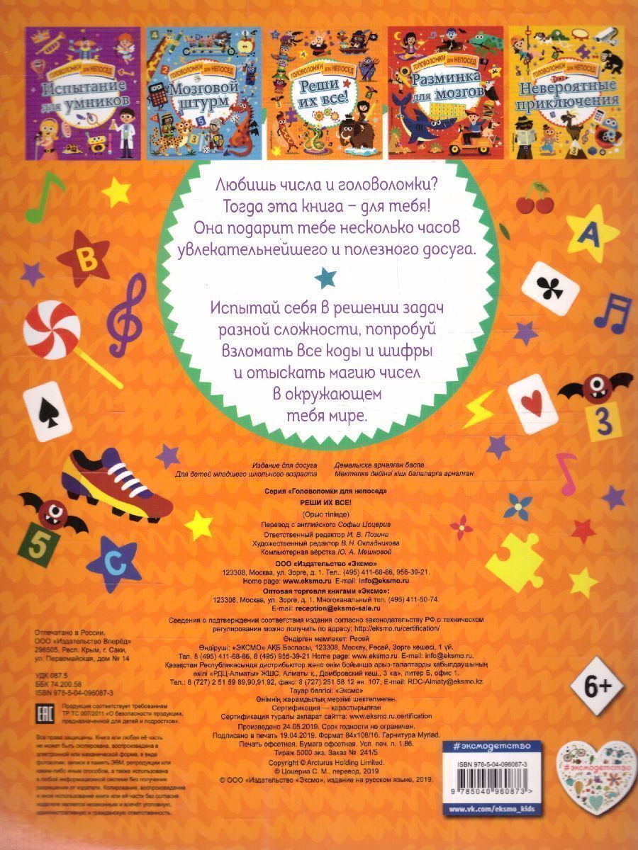 Любишь числа и головоломки? Тогда эта книга - для тебя! Испытай себя в решении задач разной сложности, попробуй взломать все коды и шифры и отыскать магию чисел в окружающем тебя мире.Характеристики