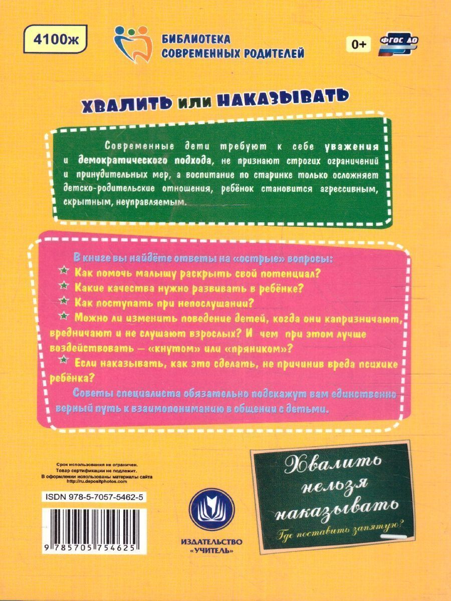 Современные дети требуют к себе уважения и демократического подхода, не признают строгих ограничений и принудительных мер, а воспитание по старинке только осложняет детско-родительские отношения, ребенок становится агрессивным, скрытным, неуправляемым. В книге вы найдете ответы на "острые" вопросы: - Как помочь малышу раскрыть свой потенциал? - Какие качества нужно развивать в ребенке? - Как поступать при непослушании? - Можно ли изменить поведение детей, когда они капризничают, вредничают и не слушают взрослых? И чем при этом лучше воздействовать: "кнутом" или "пряником"? - Если наказывать, как это сделать, не причинив вреда психике ребенка? Советы специалиста обязательно подскажут вам единственно верный путь к взаимопониманию в общении с детьми.Характеристики