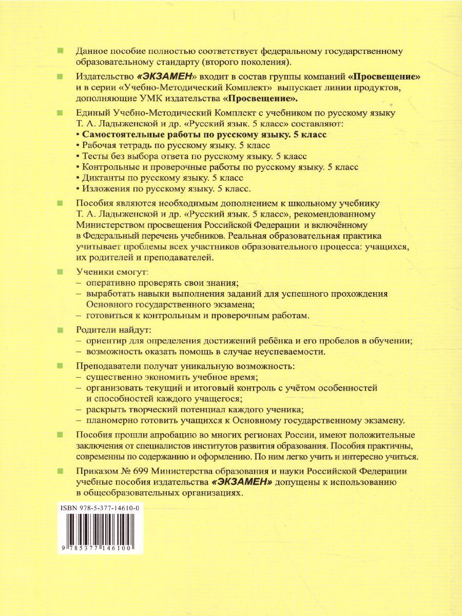 Русский язык 5 класс. Самостоятельные работы ФГОС