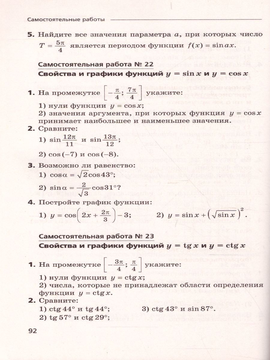 Алгебра 10 класс. Углублённое изучение. Самостоятельные и контрольные работы. ФГОС